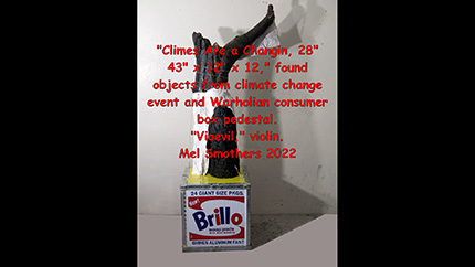 "I'm thinking mass consumerism with the Brillo Box and its effect on global climate change with the found objects," Ariel Zaccheo, Curator, March 2022.