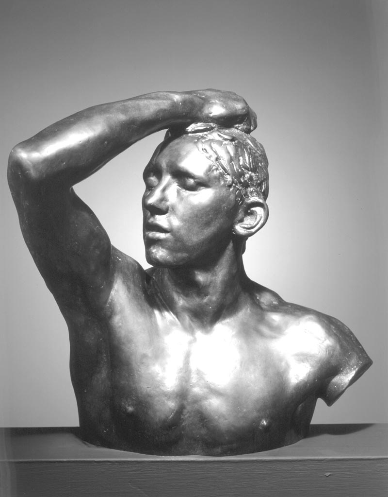 The Age of Bronze is Rodin’s first masterpiece. Exhibited at the Salon in 1877 when he was thirty-six, the work established Rodin as an independent artist. It remained a touchstone throughout his career. He created a bust and versions in two other sizes and until 1905 issued casts, in both bronze and plaster, only by special order. Rodin began work on The Age of Bronze with a scrupulous rendering after a model and then refined the image following examples of antique and Renaissance sculpture. Comparing photographs of the model (the Belgian soldier Auguste Neyt) with the sculpture itself reveals the perfection and truth to nature of Rodin’s modelling. The comparison equally demonstrates that the artist subjected nature to myriad idealizations. For example, Rodin made the legs and lower torso of the figure slimmer than those of the model, and he also made the head somewhat smaller. Such details, which recall Hellenistic sculptures Rodin had seen in the Louvre and in Italy, confirm his remark that he found inspiration for his figure in a Greek Apollo. Begun in October 1875 while Rodin was working with Antoine van Rasbough in Brussels, "my figure," as Rodin referred to the work in his letters to Rose Beuret, was finished late in 1876 after he returned from Italy. In plaster and provisionally titled The Vanquished One, the work went on view at a club in Brussels, the Cercle Artistique et Littéraire, in January 1877. Critics admired the superb technique but found the figure so true to life that one writer suggested parts of the work had been produced by moulage (body casting). This accusation followed the work, now titled The Age of Bronze, to its exhibition in that year’s Paris Salon, which opened in April. Again critics admired Rodin’s immense talent but felt uneasy with its application. |